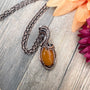 A warm and rustic small oval carnelian accented with curves at the top and twisted wire for extra sparkle. The copper is oxidized to bring out the details and add a vintage look to it.