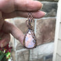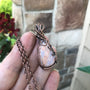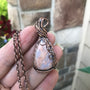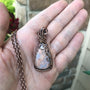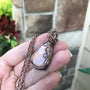 A soothing cotton candy agate with pink and white plumes looking beautiful together. The copper is oxidized and polished to reveal a lovely pale pink beige color. It gives a nice antique look and brings out the details.