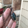 This is a gorgeous oval moss agate measuring 2 inches tall and 7/8 inches wide. The stone is a beautiful blend of mossy forest green and translucent patches. The simple curved design is perfect for everyday wear. The oxidized & polished copper gives a vintage, antique look.