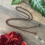 A 100% copper 3.4 mm oval cable link chain with lobster clasp. If you look closely, you will see the textured pattern on each link.