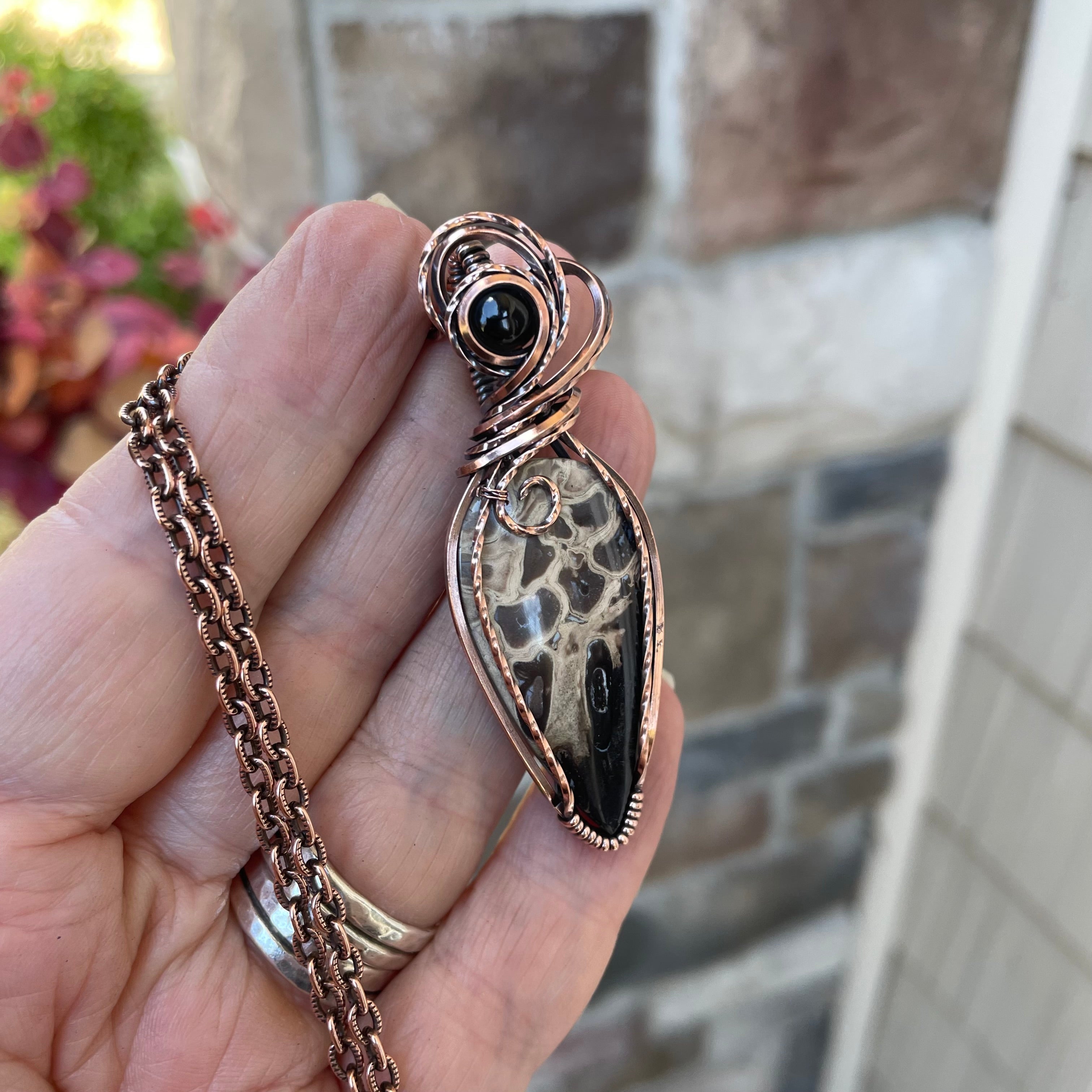 Petrified Palm Wood & Smoky Quartz Copper Necklace