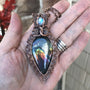Rainbow Labradorite & Moonstone Copper Wire Weave Pendant