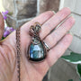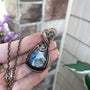 Slate Blue Green Labradorite & Prasiolite Copper Pendant