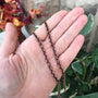 Copper chains: I buy these 99.9% copper chains raw and shiny so I can oxidize and polish them myself. This way the antiqued color matches the pendant perfectly instead of being too orange if they are copper-plated.