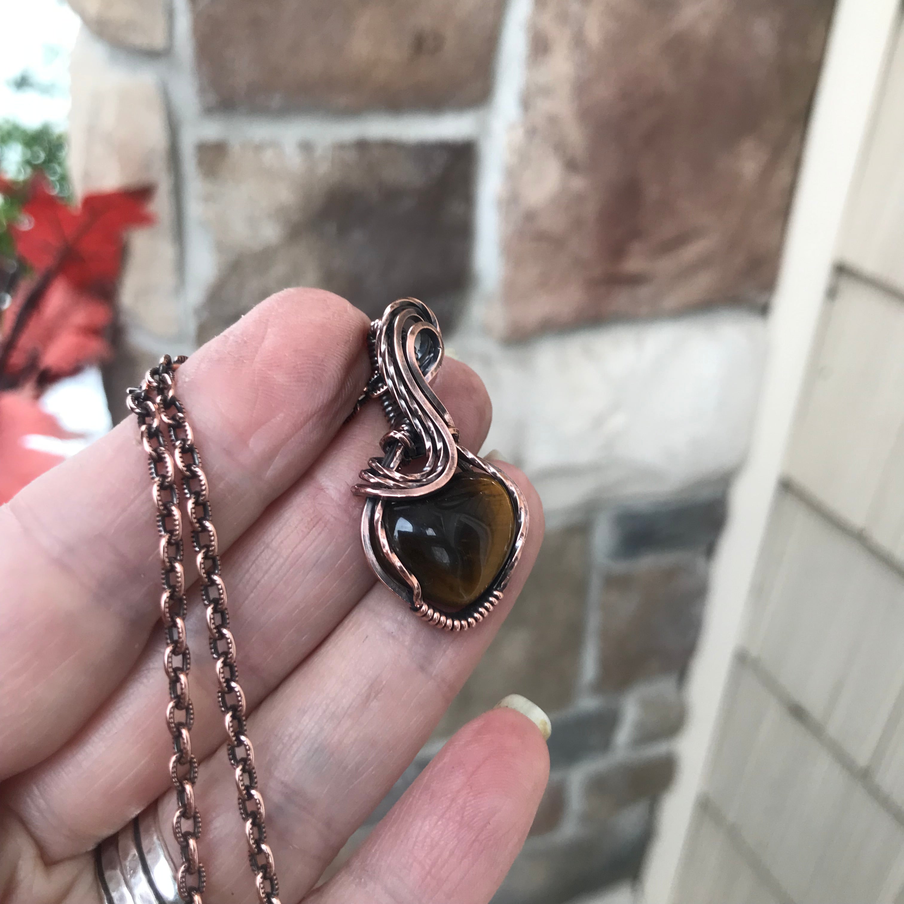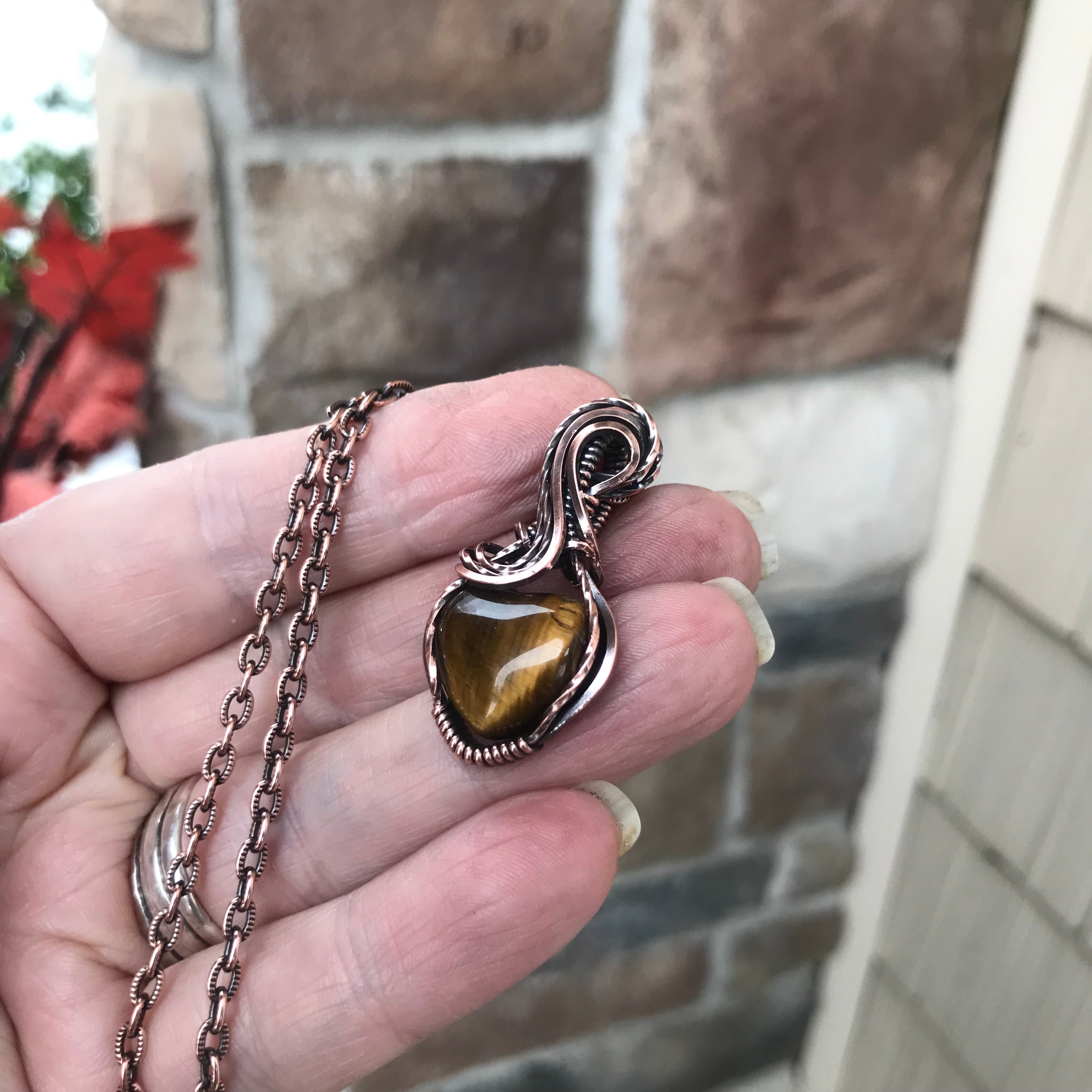 Tiger Eye Mini Heart Copper Pendant
